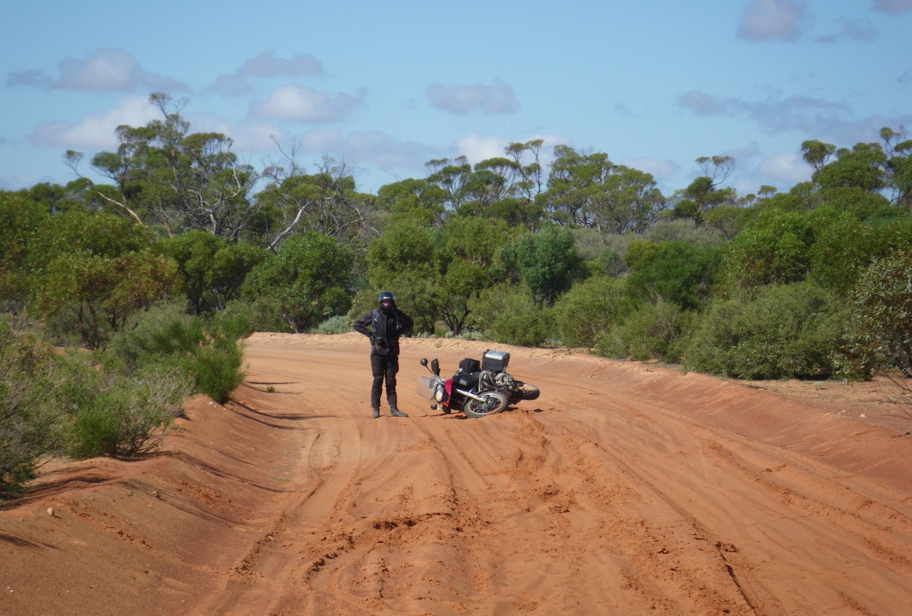 the bane of the novice adventurer - bottomless sand pits. Bike loses