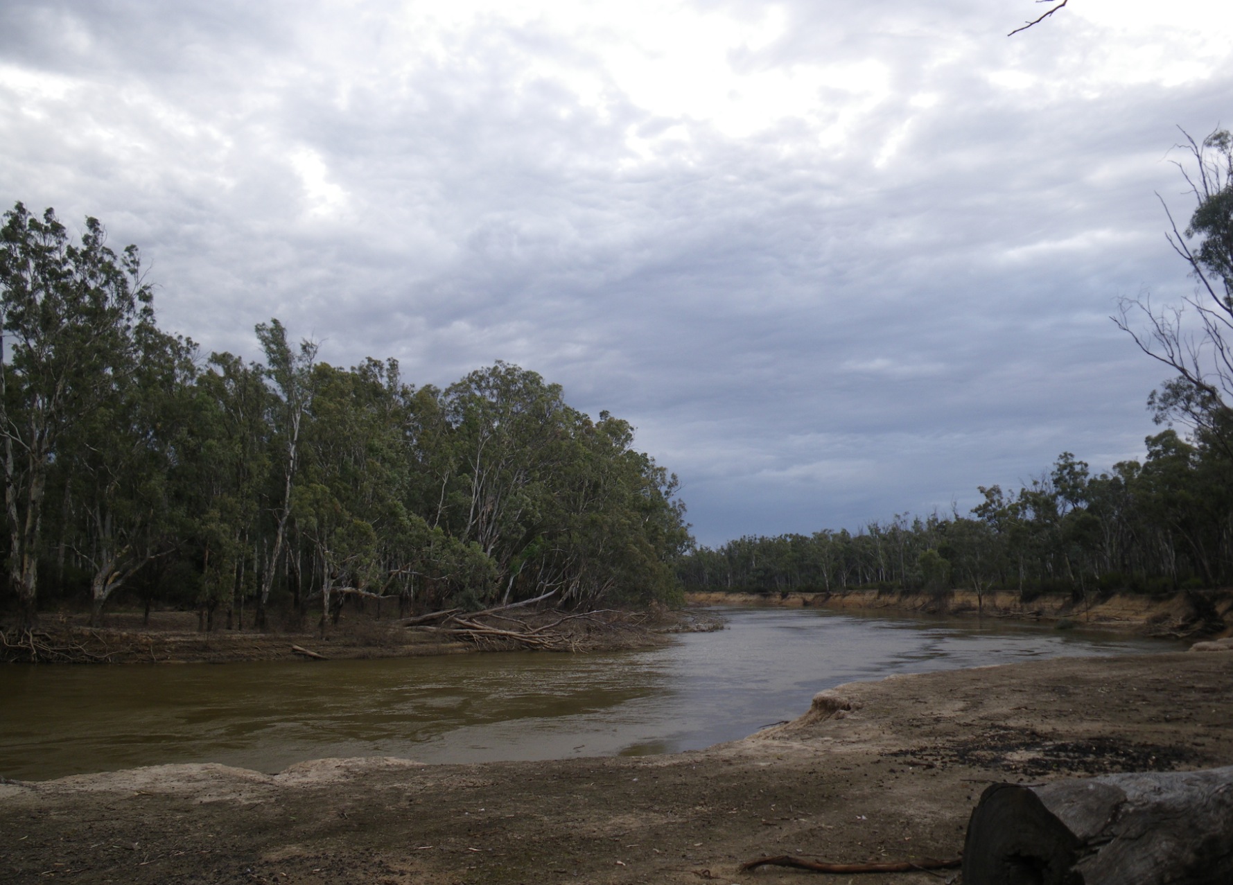 the Murray River - filled to the brim. The steady rain of the following
